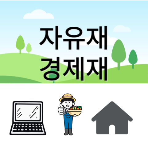 자유재란 누구나 무료로 얻을 수 있고, 희소성이 없는 자원을 말합니다. 예를 들어 교실 창문을 통해 들어오는 공기, 햇볕, 바닷가의 모래와 같은 것들이 자유재입니다. 반대로 경제재는 희소성이 있고, 사용하려면 비용이나 대가가 필요한 자원을 의미합니다. 학교 매점의 음료, 도서관의 참고서, 학원 강의 시간 등이 경제재에 해당하죠.